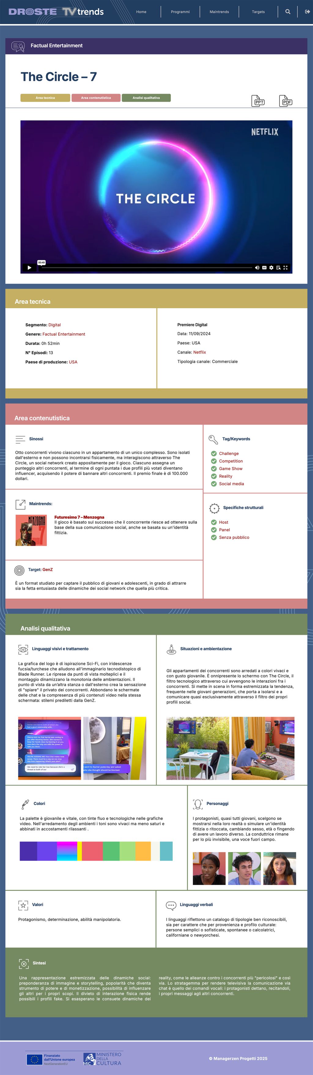 Agenzia: Managerzen Piattaforma/osservatorio sulle tendenze delle produzioni TV Progetto grafico, UI, realizzazione Home Page Risultati di ricerca Scheda programma